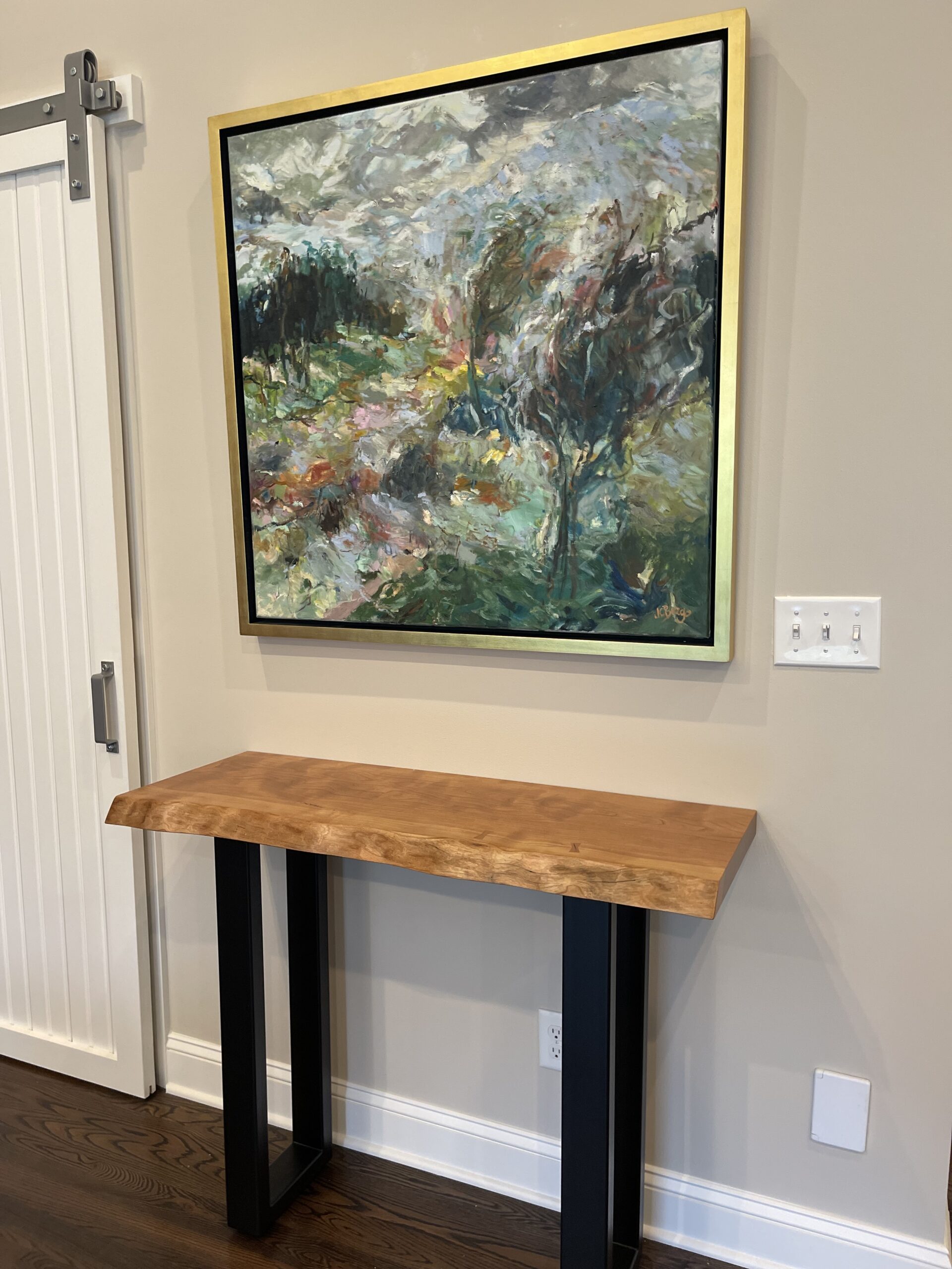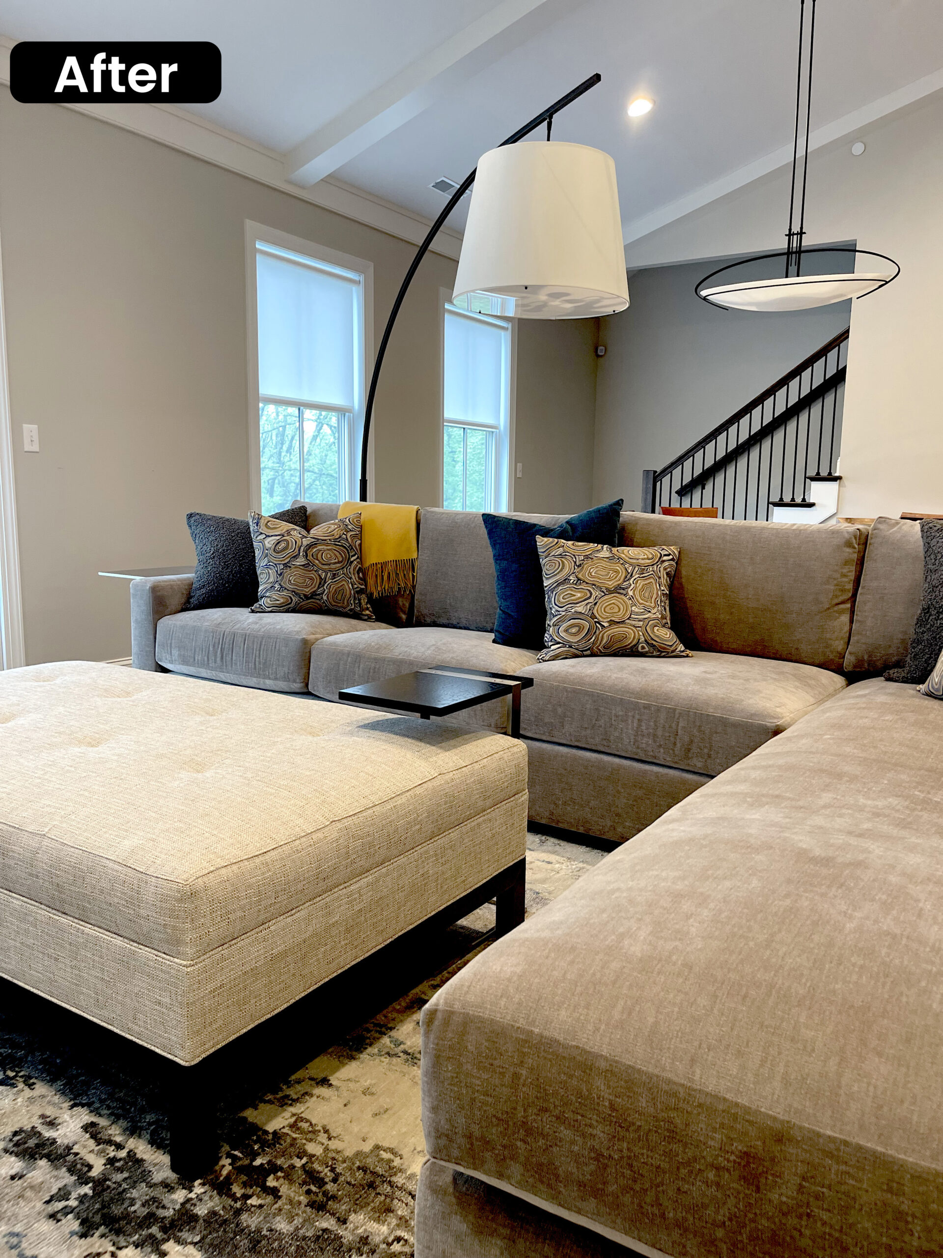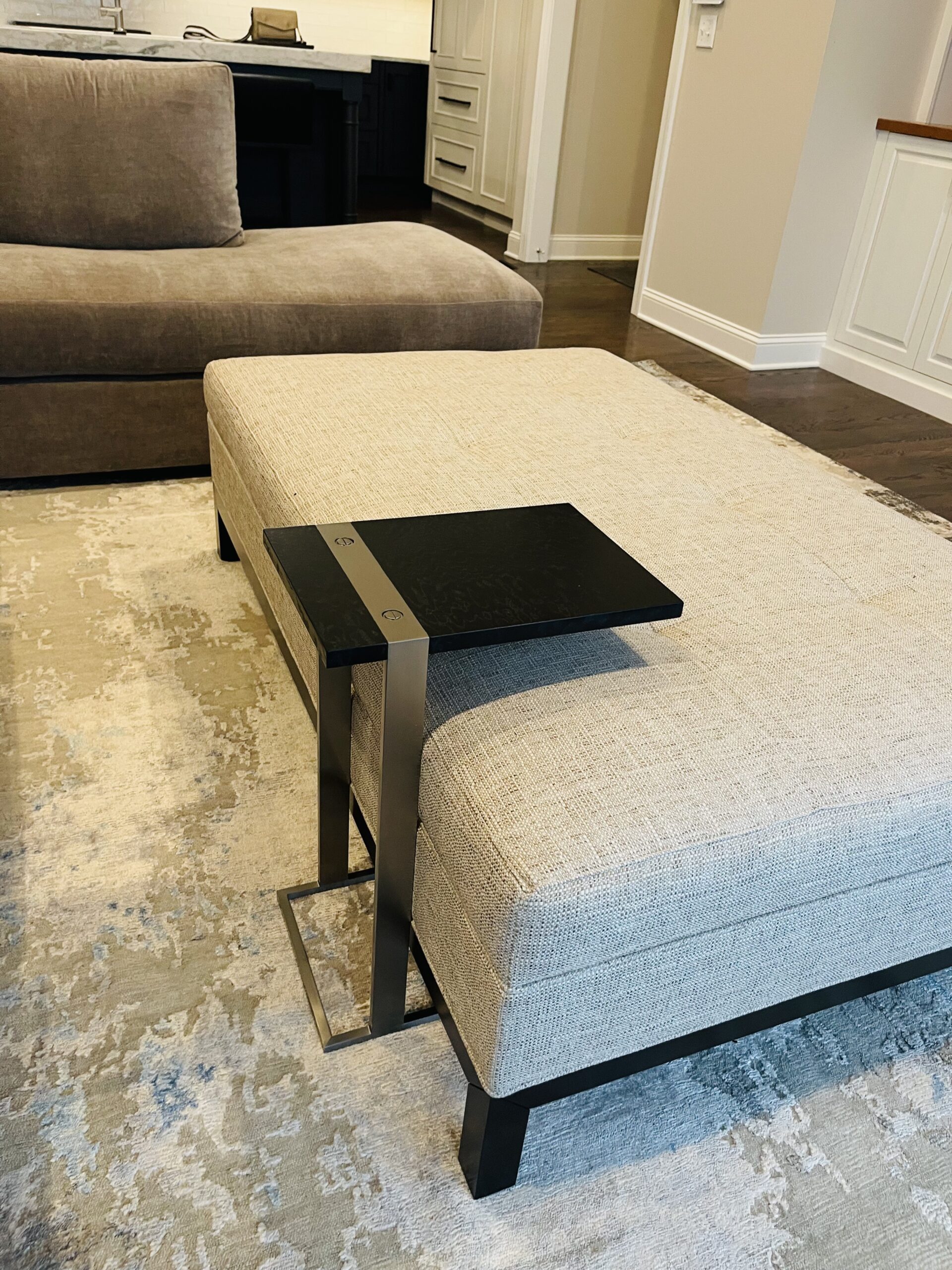 An elevated condominium retreat designed for a life well lived. Warm textures, thoughtful proportions, and timeless design details create a serene backdrop for relaxed days, meaningful moments, and a refined approach to retirement. The client envisioned a space anchored in comfort yet effortlessly elegant for entertaining—featuring inviting, tailored furnishings, calming grey tones, and subtle geometric patterns for visual interest. Dining chairs reupholstered in trend forward lighting add a sculptural edge, while a custom live-edge side console was thoughtfully introduced to complement the client’s existing William Morris–inspired tall cabinet, bringing warmth, character, and a touch of artisan craftsmanship to the space.